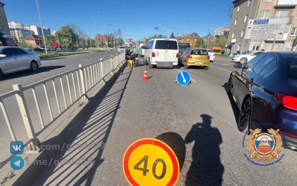 В городе Калининграде произошло столкновение микроавтобуса и скутера