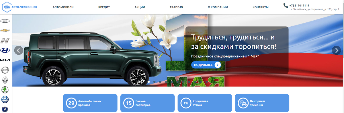 Авто Челябинск — это автосалон в Челябинске. Вероятнее всего, физически его не существует. Это лендинг для сбора заявок, которые обрабатываются в сети салонов Сильвер, репутация которой оставляет желать лучшего. Автосалон Авто Челябинск якобы находится на улице г. Челябинск, ул. Игуменка, д. 173, стр. 1. Но, согласно данным Я.Карт, там находится салон Сильвер. Скорее всего, мы имеем дело с лендингом для сбора заявок. Авто Челябинск предлагает купить в салоне новые автомобили. Выбор большой: в каталоге представлено более 30 марок. Настораживают цены: например, Lada Granta Sedan выставлена по цене от 257 900 рублей. Владелец автосалона Авто Челябинск — ООО «Сильвер-Авто ПЛЮС» (ИНН 74550274960), что еще раз доказывает, что это лендинг для сбора заявок для салона Сильвер. Компания была зарегистрирована в 2016 году. На этом положительные моменты заканчиваются. В остальном: Владелец автосалона Авто Челябинск неоднократно становился фигурантом судебных исков о защите прав потребителей: он пр