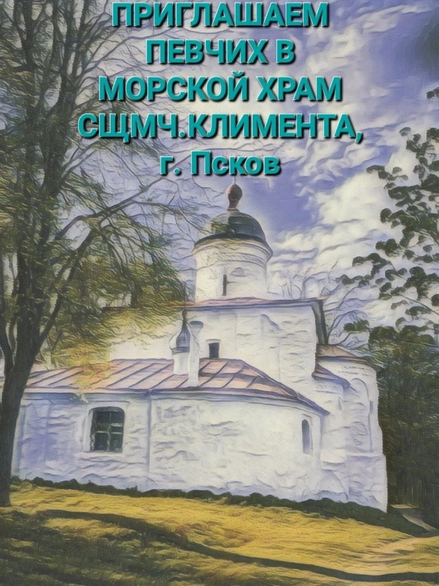 В хор храма священномученика Климента Римского города Пскова приглашаются певчие. Требования к кандидату: знание нотной грамоты (читка с листа во время спевки); желателен опыт пения в храме и знание гласов; дисциплина и ответственность; желание вкладывать душу в свое дело. По всем вопросам обращаться на мессенджеры по номеру телефона: 8 964 676 00 77.