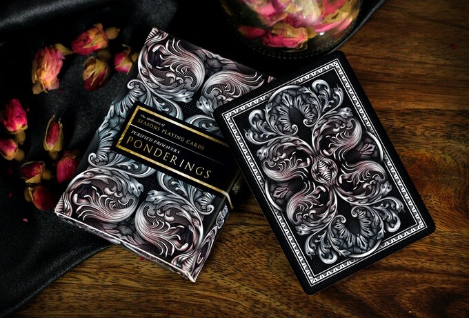 - Тематика: Колода "Размышления" из аптекарской серии Четыре сезона, олицетворяющие весну. Иллюстрации в стиле гравировки. На изображены пестик и ступка. Создатель Alexander Chin и компания Seasons Playing Cards. Бумага Aristocrat Stock.