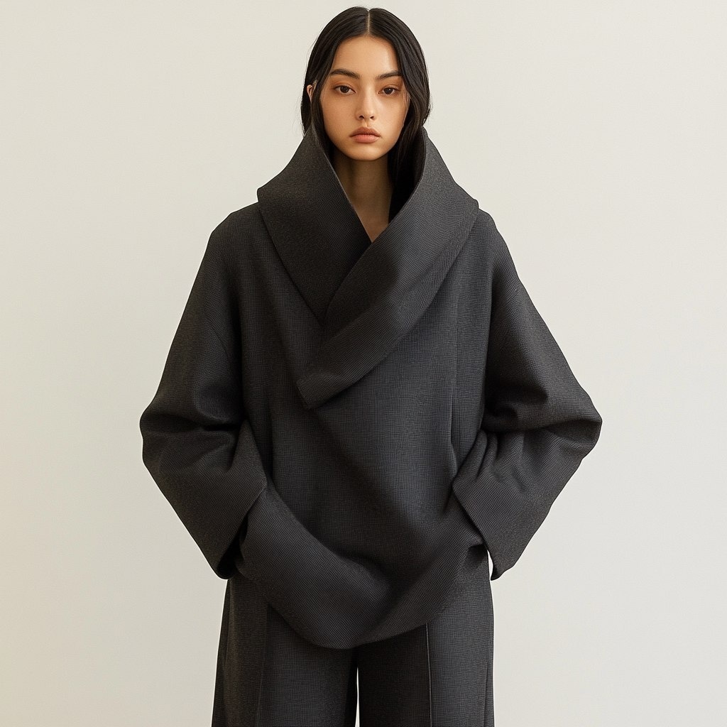 Создано на основе запроса: floor length women's wool suiting jacket with large chunky collar on female model that looks like Kendall Jenner with simple background --- Автоперевод: Женская шерстяная куртка для женской шерсти с большим коренатым воротником на женской модели, которая выглядит как Кендалл Дженнер с простым фоном Красиво вышло? 🤔 https://dzen.ru/id/65c0c65c86e4f837c27b24d7 #ИИ #AI #нейросеть #midjourney #art