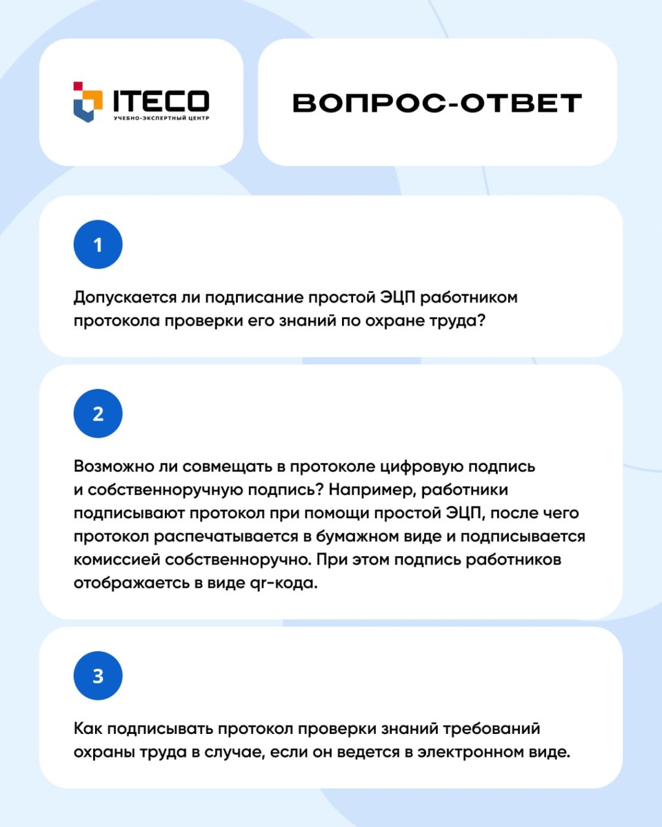❓ Допускается ли подписание простой ЭЦП работником протокола проверки его знаний по охране труда?