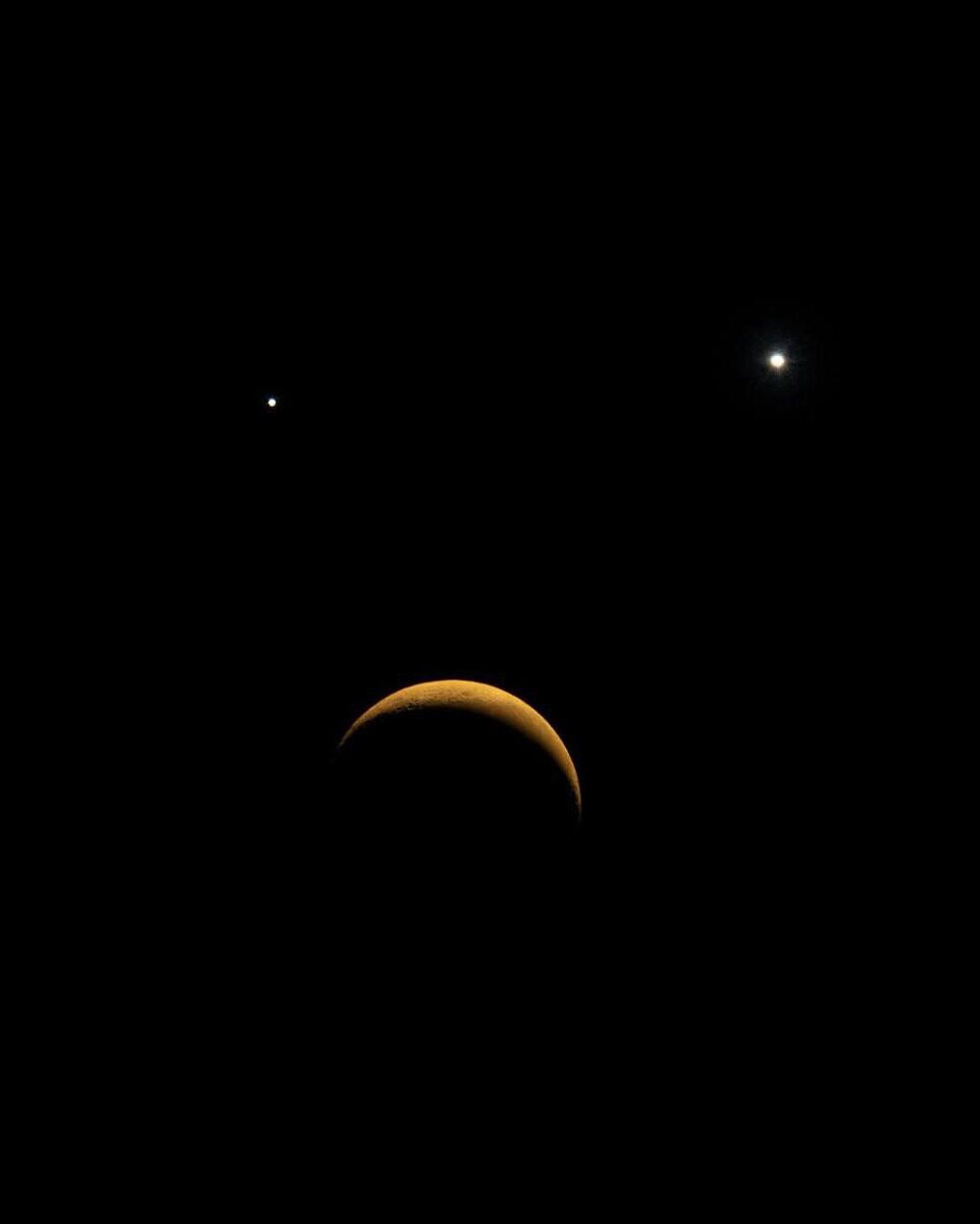 "Смайлик" из Венеры, Сатурна и серпа Луны действительно получился не очень радостным — линия "рта" оказалась скорее грустной, чем улыбающейся, поэтому небесное зрелище выглядело скорее меланхолично, чем весело.
