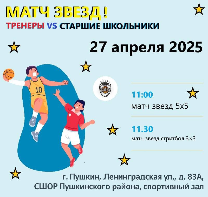 В воскресенье в нашей СШОР играем в баскетбол! 🏀 ⚡️27 апреля пройдет «Матч звезд»: тренеры сыграют против старших школьников. В 11:00 🕚 Матч в формате 5х5 В 11:30 🕦 Матч по стритболу 3х3 ⛹️♂️В играх также примет участие наш КСК «Пять колец»! Поддержим спортсменов! 🧡 #ГБУДОСШОРПушкинскогорайонаСанктПетербурга