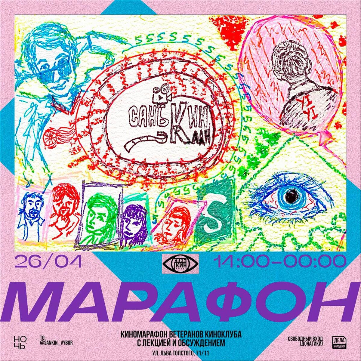 АПРЕЛЬСКИЙ КАПОМАРАФОН Раз в месяц киноклуб смотрит фильмы, которые выбрали Ветераны и Меценаты киноклуба: 🗓️ 26 апреля 📍 Льва Толстого, 71/11 (вход со двора) 14:00-16:00 | РЕКВИЕМ ПО МЕЧТЕ (2000) — Выбор Наставников реж. Даррен Аронофски комментарий Наставников (Лиля Сафина, Денис Краcнов, Регина Гарипова, Патриция Минаева): Наставники оставили вас без агитки. 16:00-18:00 | КЛЕРКИ (1994) — Randomizer реж. Кевин Смит комментарий Капо (Ярослав Центнер): Фильм повествует о людях, чьи амбиции оказались стёрты суровой реальностью, а выбор бессмысленного существования был возведен в абсолют и приравнен к моральному принципу. Абсурдные ситуации и псевдофилосовские разговоры; отсутствие какого-либо сюжета в декорациях одного магазина, в котором бездействие и самоирония приобретает почти сакральное значение. Личностное бесперспективное бытие в задрипанном супермаркете мухосранска. 18:00-20:00 | ВИДЕОДРОМ (1983) — победитель голосования реж. Дэвид Кроненберг комментарий Капо (Ульяна