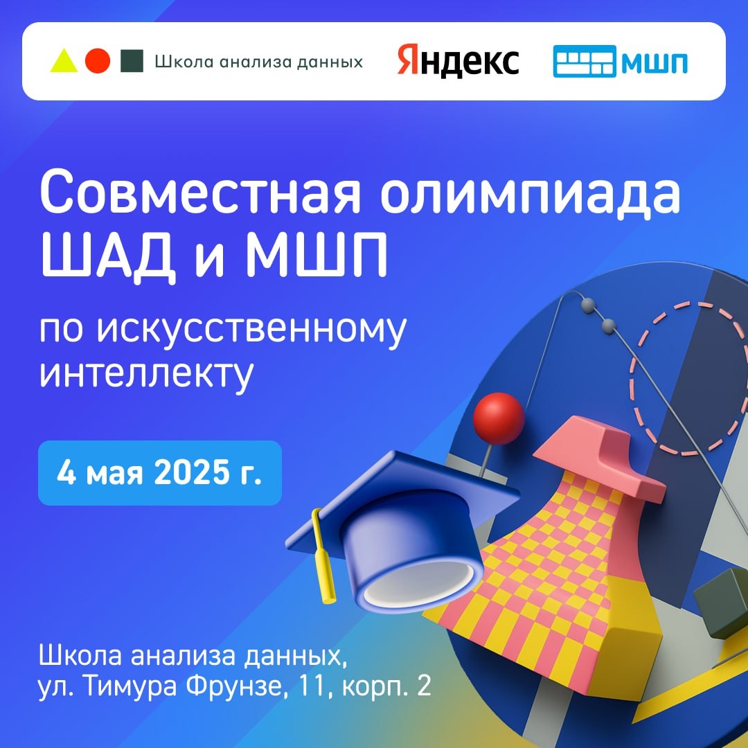 ΠΊΠΎΠΌΠΏΠ°Π½ΠΈΠΈ Π―Π½Π΄Π΅ΠΊΡ ΠΈ ΠΠΎΡΠΊΠΎΠ²ΡΠΊΠ°Ρ ΡΠΊΠΎΠ»Π° ΠΏΡΠΎΠ³ΡΠ°ΠΌΠΌΠΈΡΡΠΎΠ² ΠΏΡΠΈΠ³Π»Π°ΡΠ°ΡΡ ΡΠ΅Π±Ρ ΠΏΡΠΈΠ½ΡΡΡ ΡΡΠ°ΡΡΠΈΠ΅ Π² ΠΏΠ΅ΡΠ²ΠΎΠΉ ΡΠΎΠ²ΠΌΠ΅ΡΡΠ½ΠΎΠΉ ΠΎΠ»ΠΈΠΌΠΏΠΈΠ°Π΄Π΅ ΠΏΠΎ ΠΈΡΠΊΡΡΡΡΠ²Π΅Π½Π½ΠΎΠΌΡ ΠΈΠ½ΡΠ΅Π»Π»Π΅ΠΊΡΡ! β ΠΠ΅ΡΠ²Π°Ρ ΡΠΎΠ²ΠΌΠ΅ΡΡΠ½Π°Ρ ΠΠ»ΠΈΠΌΠΏΠΈΠ°Π΄Π° ΠΏΠΎ ΠΠ β ΡΡΠΎ ΠΏΡΠ΅ΠΊΡΠ°ΡΠ½Π°Ρ Π²ΠΎΠ·ΠΌΠΎΠΆΠ½ΠΎΡΡΡ ΠΏΡΠΎΠ²Π΅ΡΠΈΡΡ ΡΠ²ΠΎΠΈ ΡΠΈΠ»Ρ Π² ΠΎΠ±Π»Π°ΡΡΠΈ ΠΌΠ°ΡΠΈΠ½Π½ΠΎΠ³ΠΎ ΠΎΠ±ΡΡΠ΅Π½ΠΈΡ, ΠΏΠΎΠ·Π½Π°ΠΊΠΎΠΌΠΈΡΡΡΡ Ρ Π½ΠΎΠ²ΡΠΌΠΈ ΠΏΠΎΠ΄Ρ