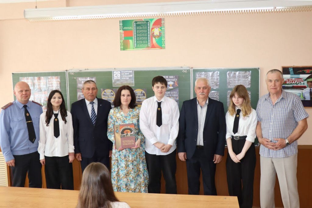 📕Глава ветеранской организации подарил педагогам и школьникам книгу «Чернобыль. Хроника мужества», посвященную деятельности милиции при ликвидации последствий катастрофы.