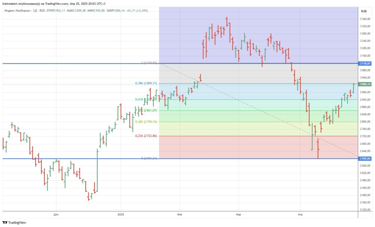 ❗️25 апреля российский фондовый рынок завершил рабочую неделю ростом, индекс МосБиржи укрепился на 2,1% до уровня 3006,14