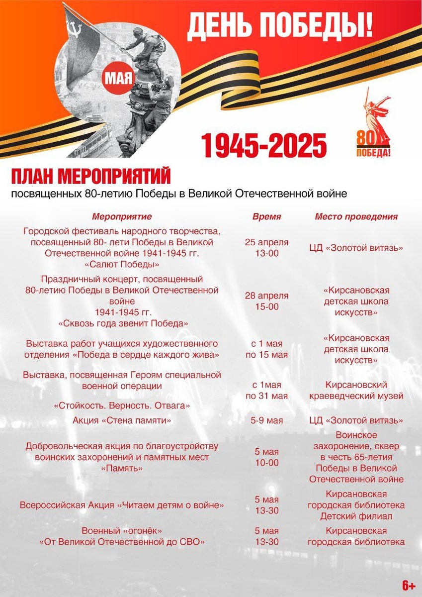 Программа праздничных мероприятий в честь 80-летия Победы. | Администрация Кирсанова |