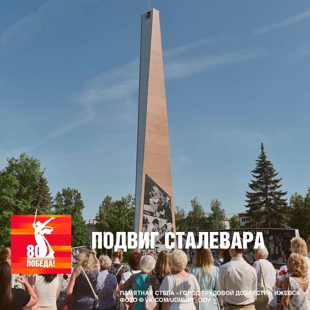 💫Во время Великой Отечественной войны рабочие Ижевского металлургического завода ковали Победу в тылу. Они совершали подвиги в цехах, в их числе был сталевар Александр Борисов. Производство не могло останавливаться ни на минуту, а один из двух разливочных ковшей в цеху прохудился прямо перед плавкой. Второй ещё не успел остыть от раскалённого металла. Рабочие подвели к нему шланги с водой и начали поливать, сбивая жар и температуру. А Борисов, надев валенки, суконную спецовку, рукавицы и защитные очки, по лестнице спустился в горячий ковш. Ударами лома отважный сталевар очищал выпускное отверстие, но сделать всё с первого раза не удалось. Передохнув, Борисов облился холодной водой и снова залез в ковш. От его спины валил густой пар, а с обуглившихся краёв спецовки летели искры. За полчаса до начала плавки ковш был готов к работе. За трудовые подвиги своих жителей 2 июня 2020 года Указом Президента Российской Федерации городу Ижевску присвоено почётное звание «Город трудовой доблести