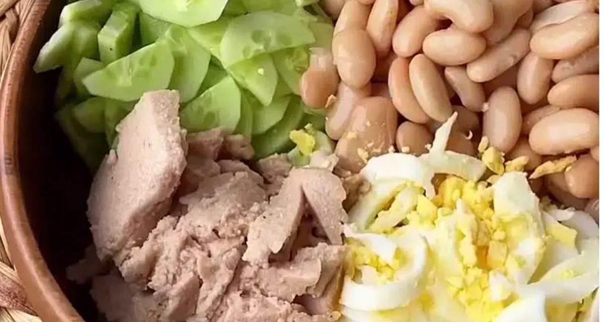 - Белковый салат с тунцом и огурцом. Понадобится: 1 огурец, 100 г консервированного тунца, 2 яйца, 2 ст. л. йогурта, 3 веточки укропа, 2 веточки петрушки, 2 пера зелёного лука, специи. Приготовление: отварить яйца вкрутую и нарезать их мелким кубиком вместе с огурцом. Разомнуть тунца, измельчить зелень, приправить салат и заправить его йогуртом.