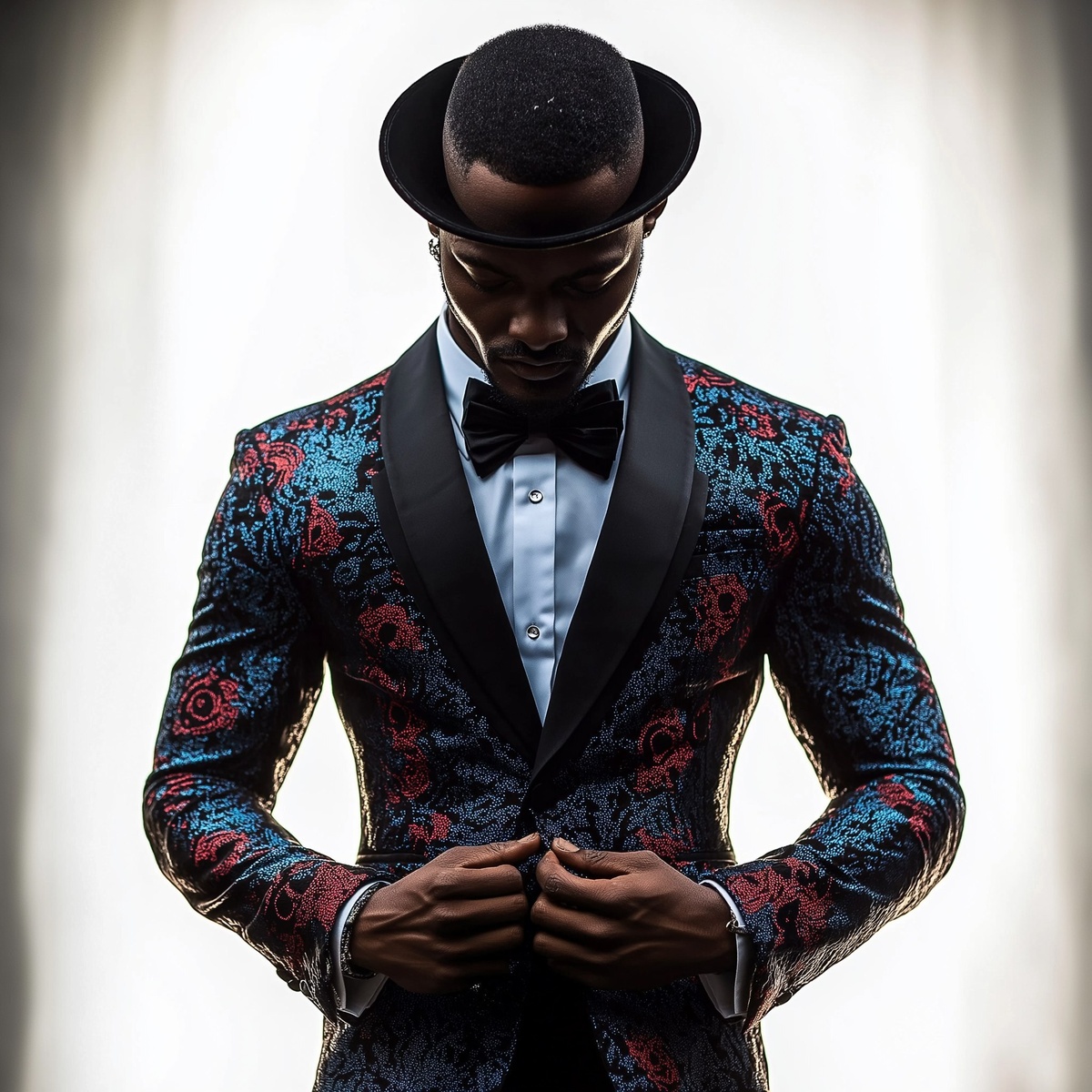 Создано на основе запроса: Brighter shade of tuxedo with ankara prints --- Автоперевод: Более яркий оттенок смокинга с принтами Анкары Круто вышло? 🤔 https://dzen.ru/id/65c0c65c86e4f837c27b24d7 #ИИ #AI #нейросеть #midjourney #art
