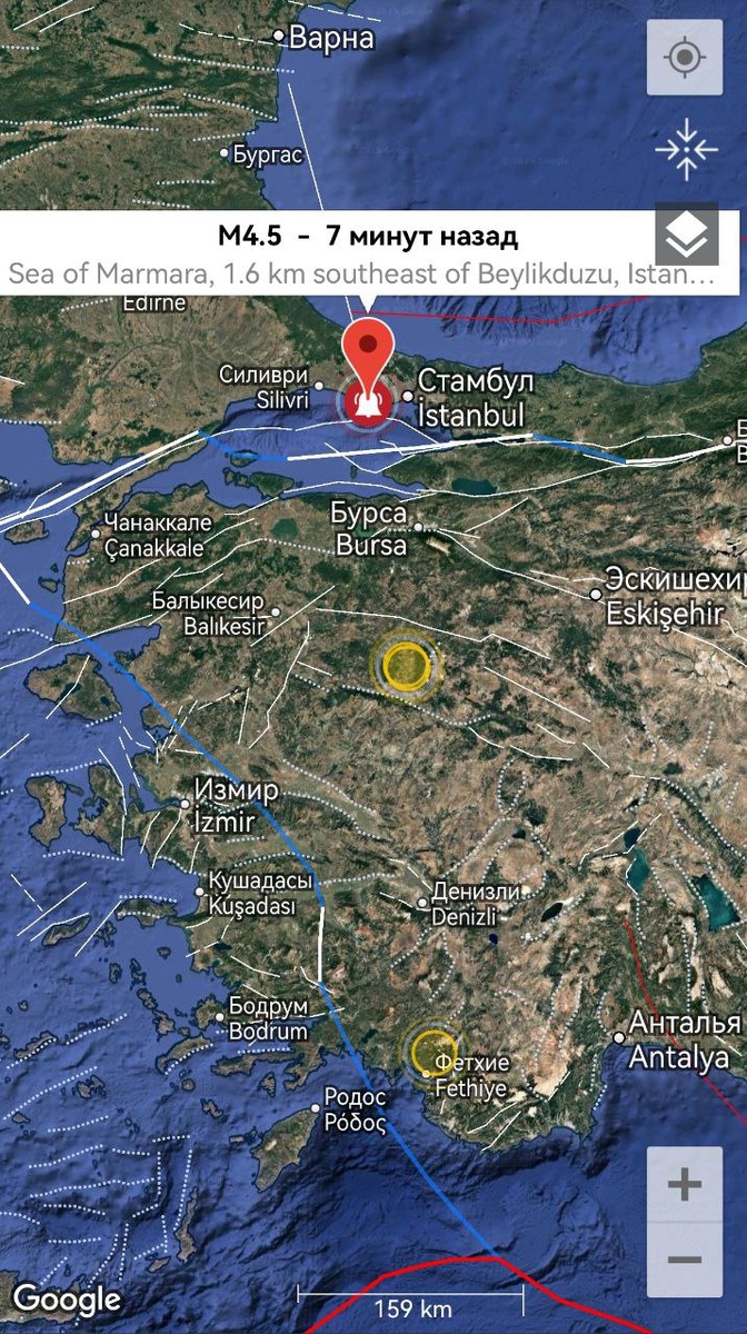 Четыре дежурных землетрясения М4+ за сутки по западной границе Анатолийской плиты произошло, наблюдаем далее до 9 мая.