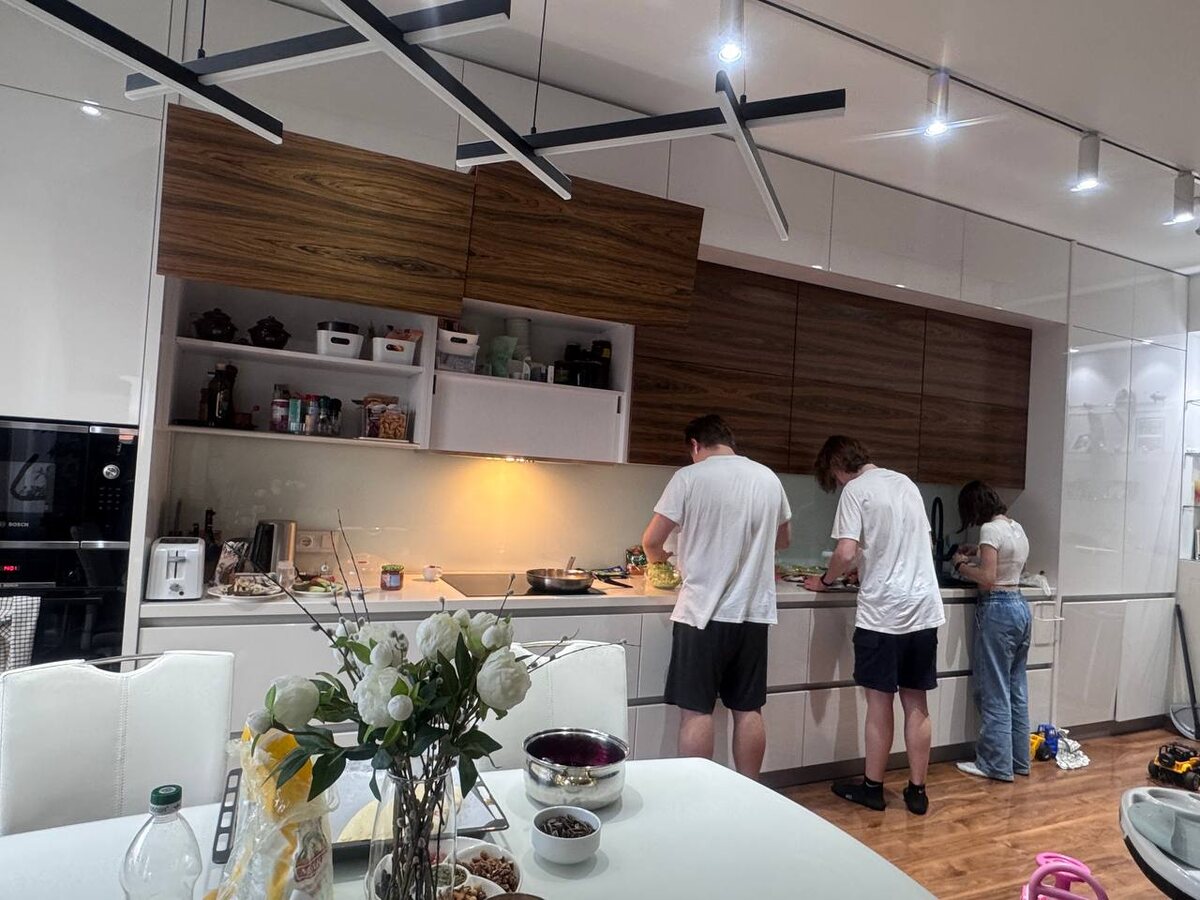 Ужин сегодня готовили старшие дети🎉 Любят роллы (шаурма). Дима жарил мясо и скручивал, Егор мыл и резал овощи, Маруся всем помогала )) Днем съездили погуляли в парк Северного речного вокзала - очень там красиво😍. Много интересных детских площадок, все чистенько и ухоженно! А папа наш в командировке уже вторую неделю, ждём в воскресенье) Всем хороших выходных!🌷🌷🌷