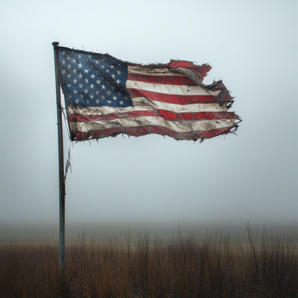 Создано на основе запроса: American flag tattered flying in the wind. with a foggy field. --- Автоперевод: Американский флаг взрывался на ветру. Как тебе эта картинка? 🤔 https://dzen.ru/id/65c0c65c86e4f837c27b24d7 #ИИ #AI #нейросеть #midjourney #art