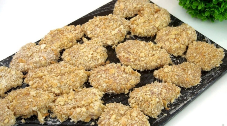 Рецепт "растрепок" в хлебе. Люблю быстрые рецепты, а этот, как раз из этой серии. Можно пожарить на сковороде, а можно запечь в духовке, а можно приготовить сразу побольше и заморозить в морозильной камере, когда нужно достать и приготовить, что я обычно и делаю. Рецепт: Для панировки: СПОСОБ ПРИГОТОВЛЕНИЯ Куриное филе, 500 грамм порежем на кусочки. Взбиваем яйцо и вливаем в куриное филе, сюда добавим 1ст.л. соевого соуса и немного соли, буквально 1/3ч.л. приправу для курицы 1/2ч.л. перемешиваем и оставляем на 15 минут. Приготовим хлебную крошку. Для этого просто измельчаем при помощи блендера хлеб. Куриное филе вынимаем из маринада, обваливаем в муке, затем в яйце и теперь в хлебе. Готово. Теперь жарим на небольшом количестве растительного масла с двух сторон до золотистого цвета по 2-3 минуты с каждой стороны или запекаем в духовке при 200 градусах 10-15 минут. Подаю с кетчупом или с сырным соусом. Очень вкусно, рекомендую. Приятного аппетита! Видео версию смотрите ниже👇 Буду рада,