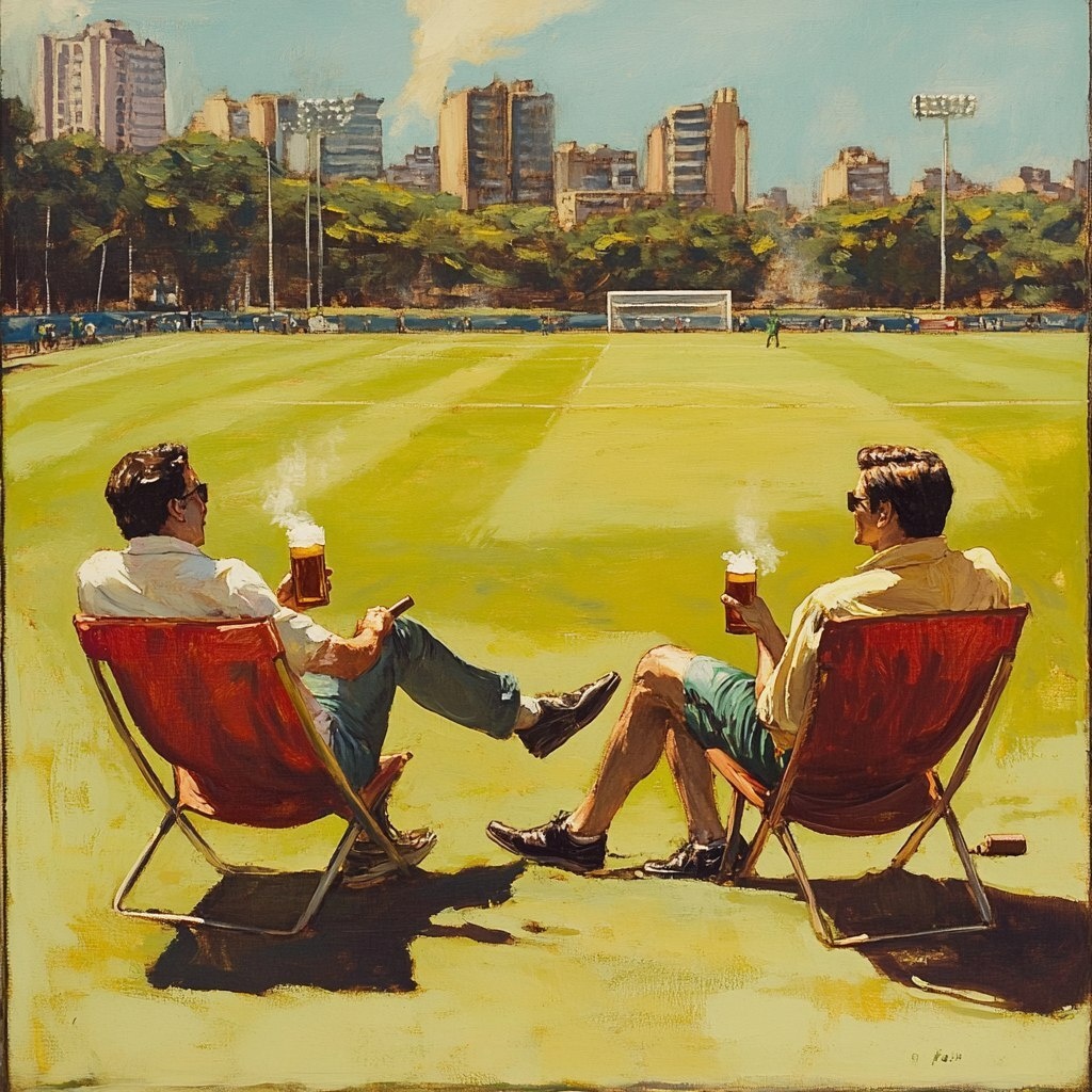Создано на основе запроса: looking for a setting where two men, both IT professionals, one anglo and one brazillian who are sitting in lawn chairs in a world-famous soccer field having beers and cigars and celebrating each others birthdays --- Автоперевод: В поисках обстановки, в которой два мужчины, оба ИТ-специалиста, один англо и один бразильцы, которые сидят в газонных стульях на всемирно известном футбольном поле, где пиво и сигары и празднование дней рождения друг друга Неплохо выглядит? 🤔 https://dzen.ru/id/65c0c65c86e4f837c27b24d7 #ИИ #AI #нейросеть #midjourney #art