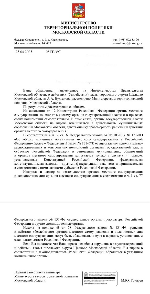 Отвечает бывший глава Сергиева Посада который отличился своими бездействиями в самом же Сергиевом Посаде. Ранее возглавлял УВД Сергиева Посада и при нем же было полное попустительство и бездействие.