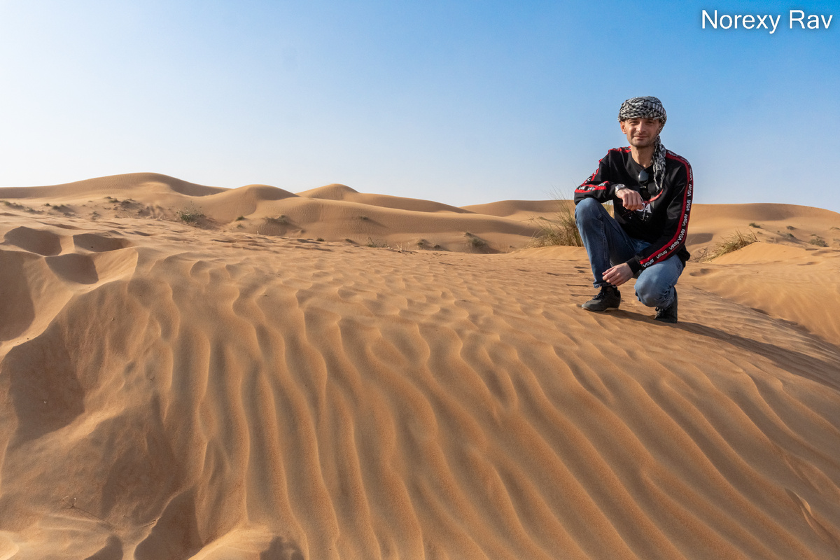 Находясь в ОАЭ, конечно же нужно выделить денёк на посещение самой настоящей пустыни, что я собственно и сделал. Выбрал экскурсию "Сафари в пустыне", они различаются по цене и дальности от города, выбрал золотую середину, экскурсия в пустыню Аль-Вади, которая находится в эмирате Рас-эль-Хайма, с вечерним ужином и представлением в кемпинге. Ехали примерно час по автобану, по факту, мы как-бы всегда были в пустыне, просто на дороге, а потом поворот, и с асфальта свернули на песчаную дорогу, предварительно перед этим, все водители подспустили шины для проходимости по песку. Первой остановкой стал сам кемпинг, где рассказали план мероприятий - сейчас небольшой отдых, потом сафари, а вечером будет ужин, файер-шоу и танец живота) . Специально для пустыни, почитав что нужно взять, приобрёл ещё дома, так называемую арафатку, платок который наматывают на голове специальным образом, попросил нашего гида правильно её уложить, правда выяснилось что они бывают разного размера, и у меня была самая