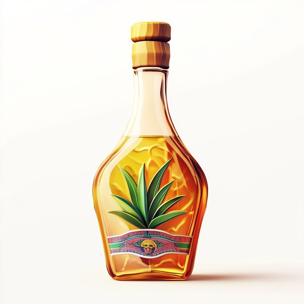Создано на основе запроса: a detailed tequila bottle emoji, ultra-realistic glass texture, vibrant golden tequila liquid inside, decorated