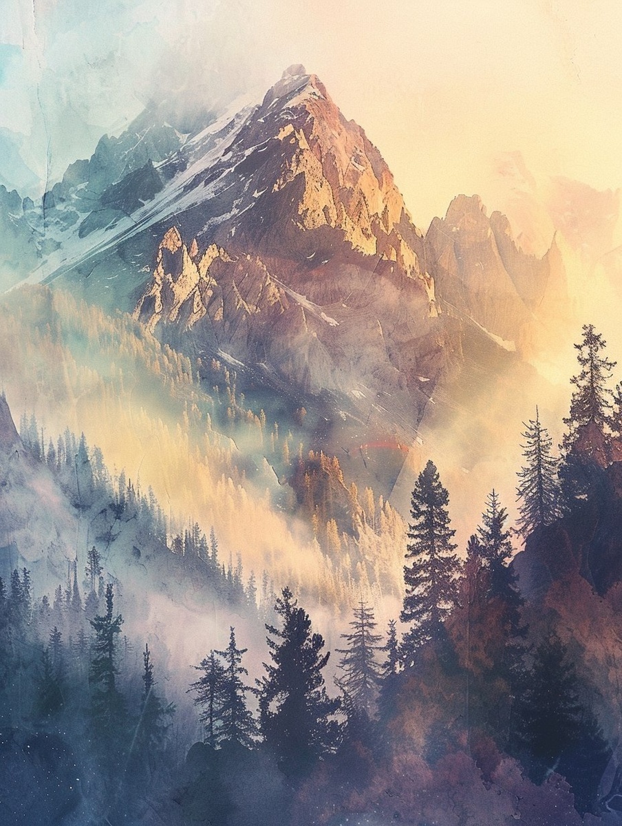 Создано на основе запроса: a peaceful alpine mountain at sunset, golden light touching the rocky peaks, soft mist rising from pine trees, tranquil valley below, watercolor painting style, canvas texture, warm pastel colors, cinematic perspective, gentle dreamlike mood --- Автоперевод: Мирная альпийская гора на закате, золотой свет, касающийся скалистых вершин, мягкий туман, поднимающийся от сосны, спокойную долину внизу, стиль акварели, текстура холста, теплые пастельные цвета, кинотеатра, нежное, сказочное настроение Необычно получилось? 🤔 https://dzen.ru/id/65c0c65c86e4f837c27b24d7 #ИИ #AI #нейросеть #midjourney #art