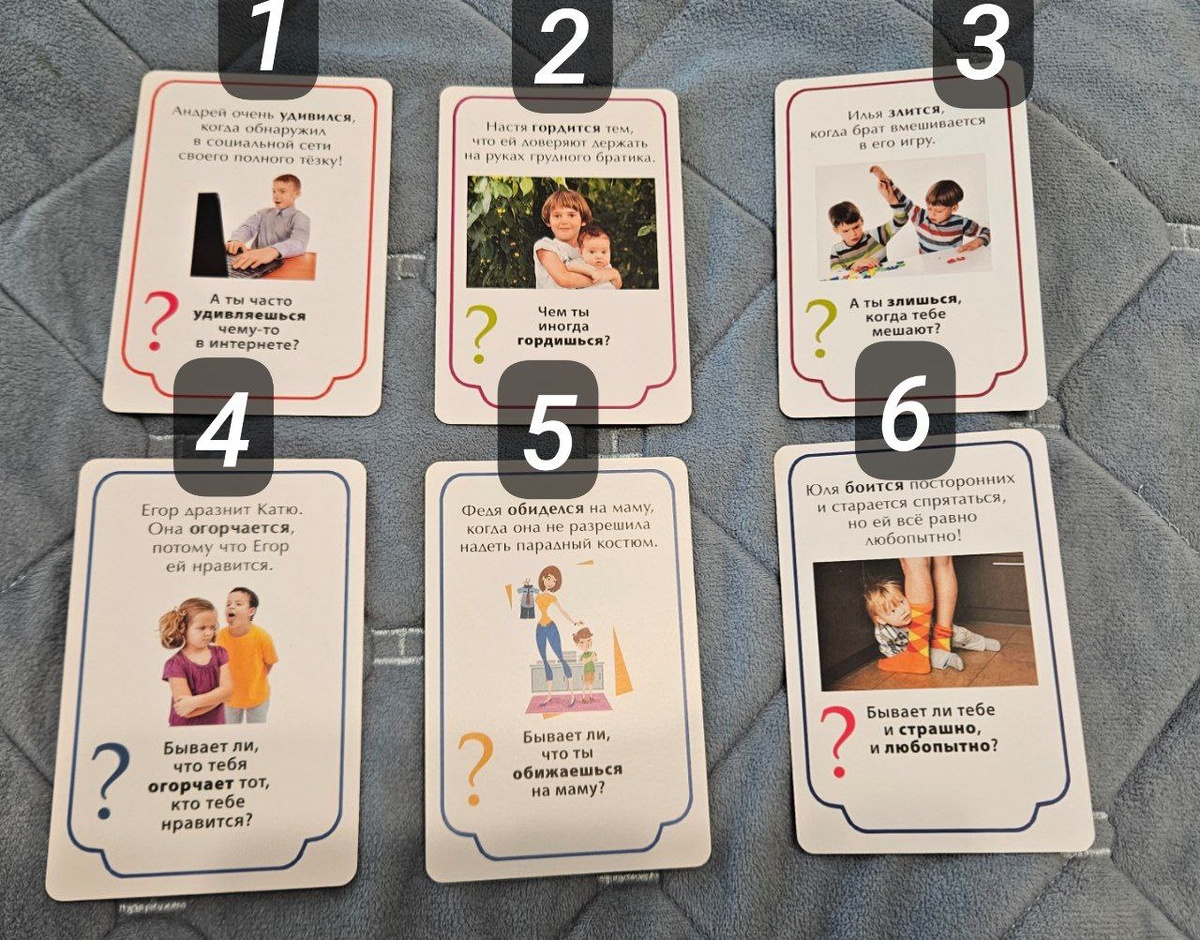 В ответ на пост #ЭИ@happy_family_way #Практика@happy_family_way Раскрываю карты о чувствах. Любопытный факт: карта под номером 5 бесспорный лидер сегодняшней игры. 🤔 Делитесь в комментариях ситуациями, в которых вы чувствовали то же, что и люди на выбранных вами картах или на всех. Я играю с вами: выбрала карту номер 3 - да, я злюсь, когда мне мешают, например, сейчас дети мешали нам с мужем наслаждаться тишиной вечера и красотой костра, и да, я понимаю, что они дети, и им свойственно шуметь и привлекать внимание, но раз злость возникает, значит скорее всего нарушены мои границы, не удовлетворяются мои потребности, в злости есть энергия действия, и её нужно направить в конструктивное русло, например, пойти уложить детей спать, чтоб наслаждаться тишиной ночи и теплом костра гармонично, что собственно сейчас и делает муж 😉 ❣Желаю всем нам быть в контакте со своими чувствами, осознавать их, гармонично проживать, и экологичного выражать! 💞✨🕊