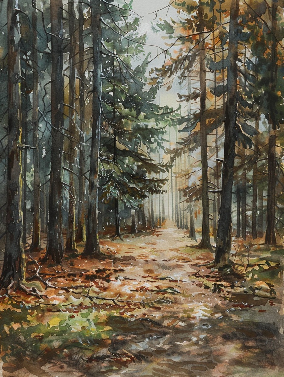 Создано на основе запроса: a quiet forest path in the early morning, soft golden light filtering through tall pine trees, slight fog in the air, fallen leaves and moss on the ground, watercolor and sketch style, muted earthy tones, calm and intimate mood, canvas texture, poetic atmosphere --- Автоперевод: Тихая лесная тропа ранним утром, мягкая золотая световая фильтрация сквозь высокие сосны, легкий туман в воздухе, падшие листья и мох на земле, акварель и стиль эскизов, приглушенные землистые тона, спокойное и интимное настроение, текстура холста, поэтическая атмосфера Интересно вышло? 🤔 https://dzen.ru/id/65c0c65c86e4f837c27b24d7 #ИИ #AI #нейросеть #midjourney #art