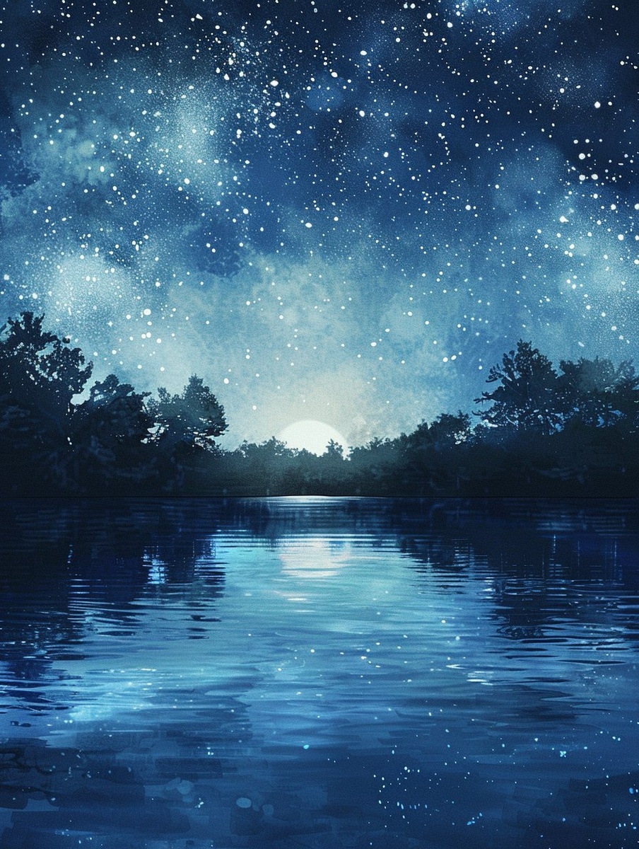 Создано на основе запроса: a peaceful night sky full of stars above a calm lake, soft reflections on the water, subtle glow of the moonlight, silhouette of distant trees, pastel night tones, watercolor and pencil texture, serene and dreamlike, slow atmosphere, painted illustration style --- Автоперевод: Мирное ночное небо, полное звезд над спокойным озером, мягкие отражения на воде, тонкое сияние лунного света, силуэт далеких деревьев, пастельные ночные тона, акварель и текстура карандаша, безмятежная и сказочная, медленная атмосфера, нарисованный стиль иллюстрации Красиво выглядит? 🤔 https://dzen.ru/id/65c0c65c86e4f837c27b24d7 #ИИ #AI #нейросеть #midjourney #art