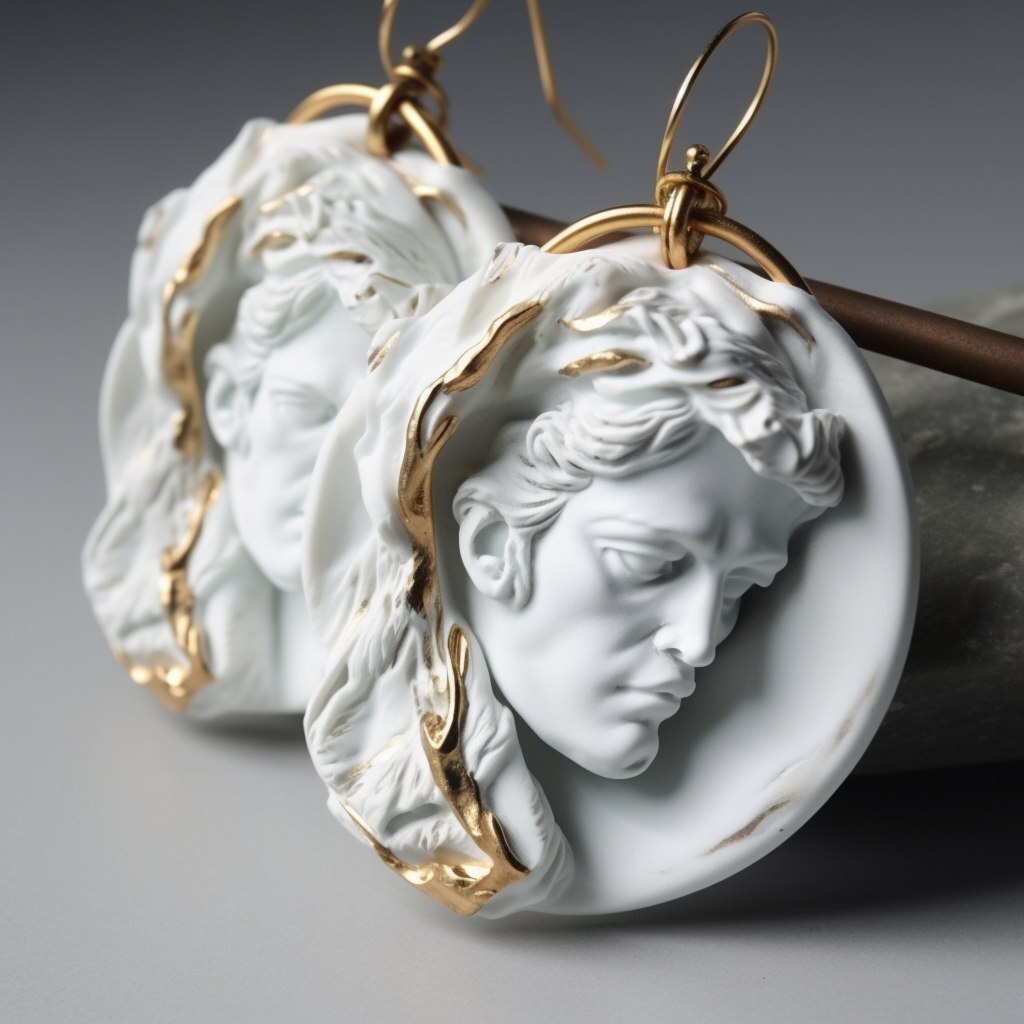 Создано на основе запроса: white and gold art jewelry earrings inspired by broken Greek sculptures