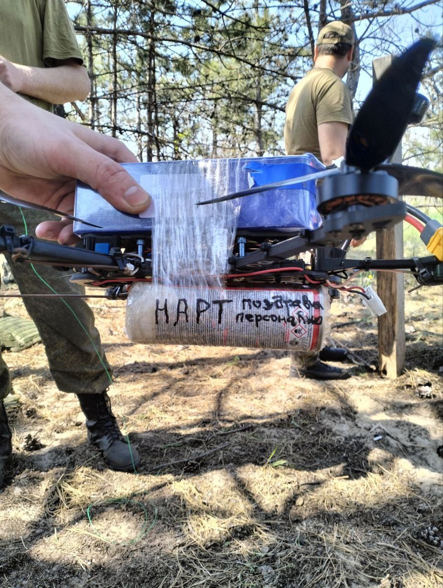 Вчера наши ребята 🇷🇺 🏳 с Херсонского направления били врага на правом берегу Днепра, уничтожили опорный пункт противника и один из FPV-дронов подписали в память о Денисе Гончаренко с позывным "НАРТ". При этом они не служили с Денисом, не знали его лично, не знали, что сегодня ему 40 дней. Наш товарищ, Путник Ирон, об этом наверняка в комментариях подробнее расскажет. Он и прислал это фото не для публикации, а рассказать о боевой работе. И, увидев на дроне позывной НАРТа, я подумал о том, что Дениса узнали, запомнили даже на расстоянии через энергетику фото, видео, памятных строк, почувствовали, что это необычный человек и воин. И даже подписали так, с характерным для него юмором и боевой дерзостью: "НАРТ поздравил персонально!". Напомнил нацистам о наступающем 9 мая! С Днём Великой Победы в память о НАРТЕ, майоре Гончаренко Денисе Александровиче, заместителе командира штурмового батальона, внуке фронтовиков, правнуке полного Георгиевского кавалера! Вечная память и слава Герою!