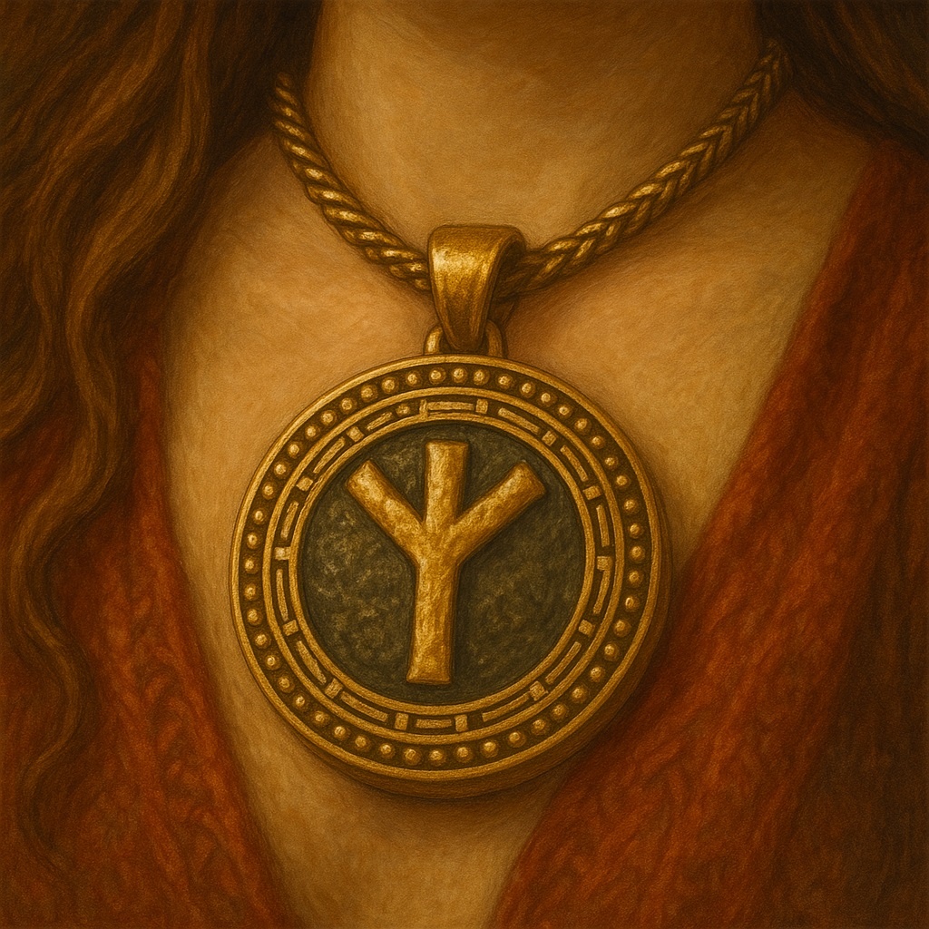 - Бронза — теплый «якорь традиции»: усиливает связь с родом, делает Алгиз мягким, «домашним».