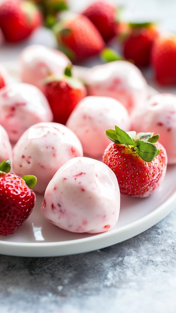 Создано на основе запроса: Title: 3 Ingredient Strawberry Yogurt Bites | Close-up Shot right view, taken by a photographer with a high