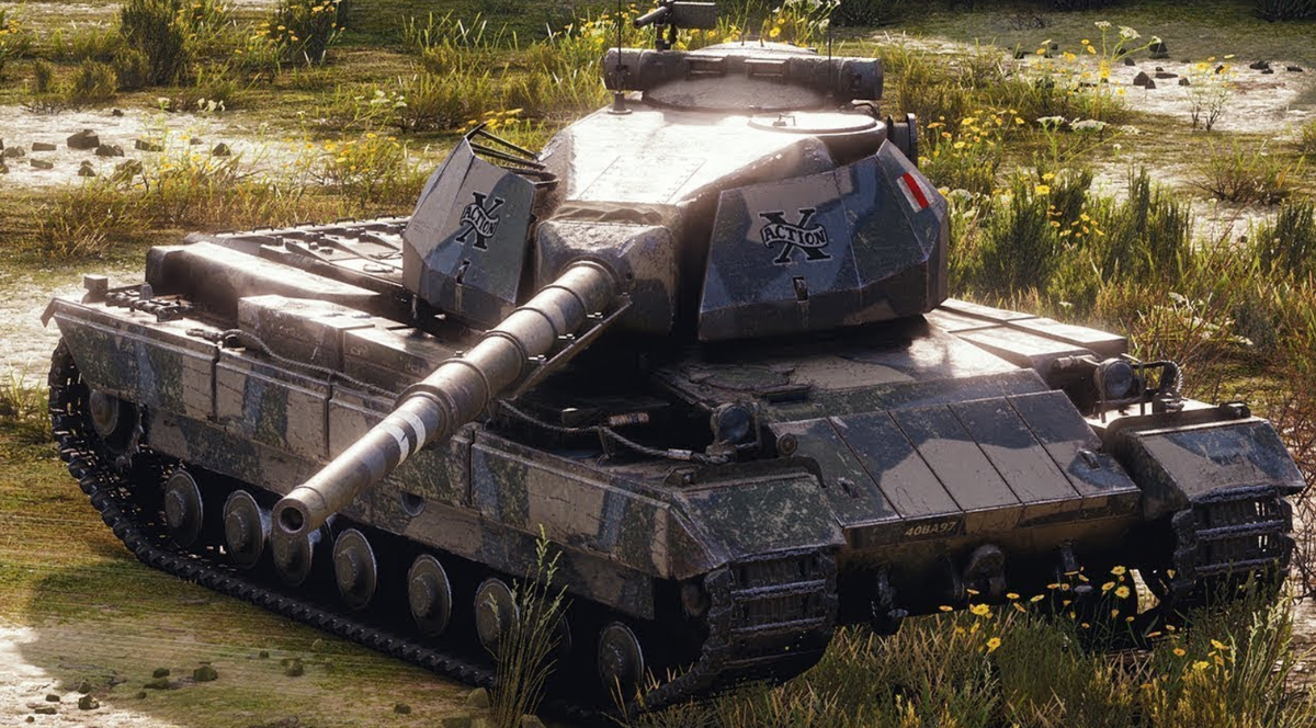 Super Conqueror — эталон тяжелого танка для позиционной игры. Прочная башня с отличными углами вертикальной наводки (УВН) позволяет эффективно играть от рельефа, а точное орудие с разовым уроном 400 единиц и высоким бронепробитием (259 мм базовым снарядом) обеспечивает стабильный урон. Хорошая лобовая броня и рикошетные углы делают его сложной мишенью. Минус — слабая подвижность, что требует грамотного выбора позиции.