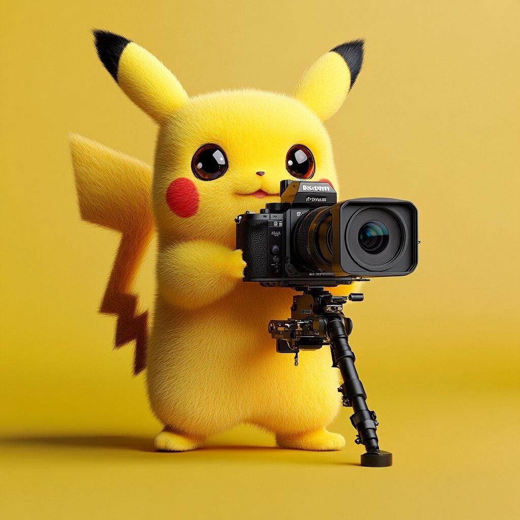 Создано на основе запроса: Pikachu holding a RED cinema camera on a gimbal, artistic style, realistic, 3d, DSLR photo, high quality