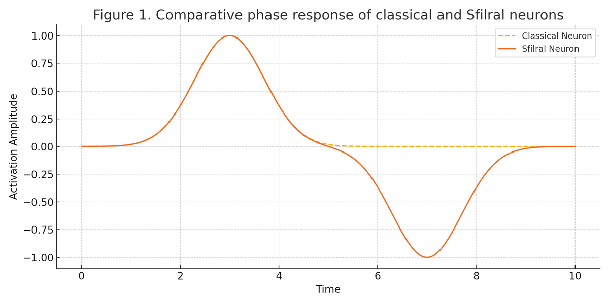 In contrast to linear signal propagation in classical neurons, the Sfilral node introduces a looped dynamic where inputs can be contextually re-evaluated and transformed. This creates a form of phase memory—where a previous state is not simply overwritten, but preserved and possibly reactivated, depending on the trajectory of the input signal.