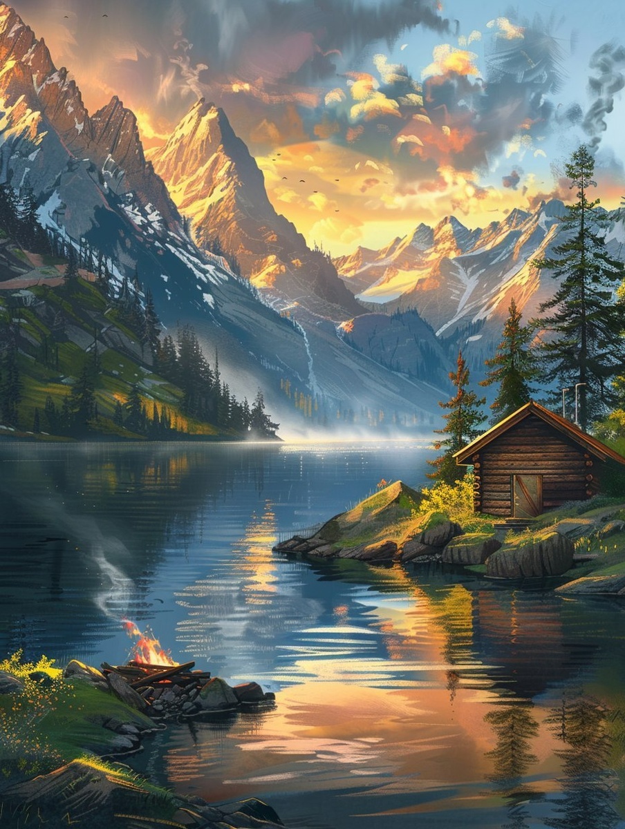 Создано на основе запроса: a remote lake surrounded by mountains with a wooden cabin on the shore, still water reflecting the sky, evening light painting the landscape golden, campfire smoke rising nearby, cinematic landscape framing, ultra detailed illustration style, high clarity, peaceful solitude, immersive depth of field --- Автоперевод: Отдаленное озеро, окруженное горами с деревянной кабиной на берегу, все еще вода, отражающая небо, вечернее освещение, рисуя ландшафт золотой, кострой, поднимающийся поблизости, кинематографический ландшафтный обрамление, ультра детализированный стиль иллюстрации, высокая ясность, мирное одиночество, иммерсная глубина поле Неплохо вышло? 🤔 https://dzen.ru/id/65c0c65c86e4f837c27b24d7 #ИИ #AI #нейросеть #midjourney #art