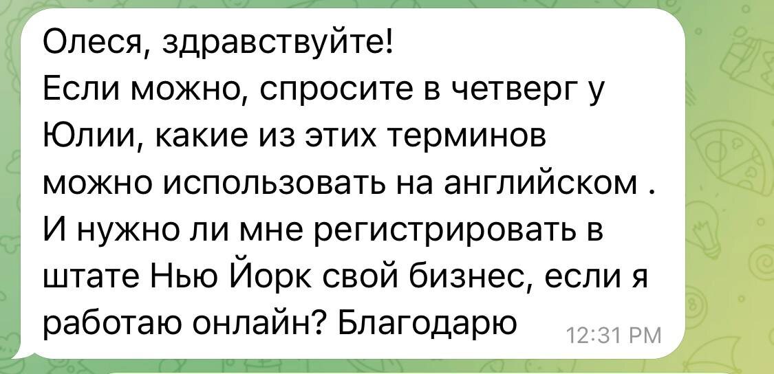 Отвечаю на вопрос прямо здесь, слишком часто его задают. По поводу терминов на английском, которые можно использовать с учётом немедицинского подхода, безопасно оформить позиционирование так: Professional Certified Hypnotist (NGH) Supporting personal change and inner balance through non-medical hypnotherapy. I work with: Stress & Anxiety Reduction Smoking Cessation Support Confidence & Performance Enhancement Weight Management & Food Habits Habit Change & Emotional Attachment Repressed Emotions & Inner Conflicts Somatic Complaints (non-medical support) Energy Restoration & Better Sleep Subconscious Barriers to Success & Wealth Non-medical services. Hypnosis is a complementary approach and not a substitute for medical or psychological treatment. Online sessions available. 🙌По поводу регистрации бизнеса в Нью-Йорке: Даже если Вы работаете онлайн, в США нужно официально зарегистрировать свою деятельность, чтобы законно платить налоги. В Нью-Йорке можно выбрать один из простых вариантов