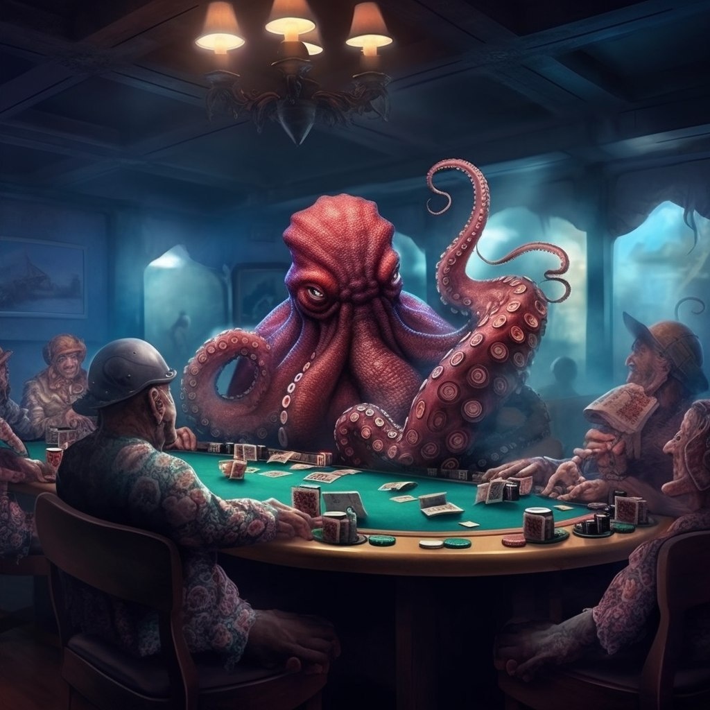 Создано на основе запроса: octopus playing poker at a poker table --- Автоперевод: Осьминог играет в покер за покерным столом Как тебе этот вариант? 🤔 https://dzen.ru/id/65c0c65c86e4f837c27b24d7 #ИИ #AI #нейросеть #midjourney #art