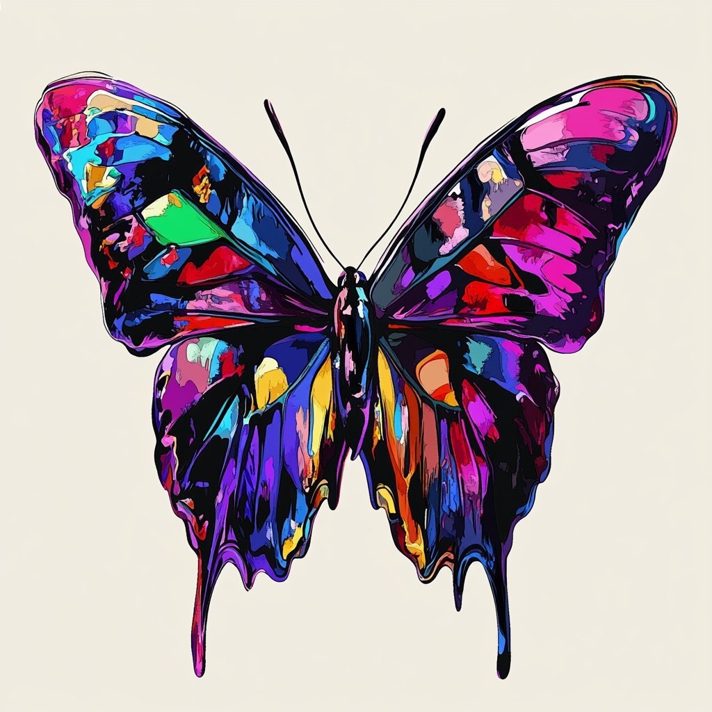 Создано на основе запроса: digitial art of vibrant colorful butterfly resembles an urban art, solid thick outlines