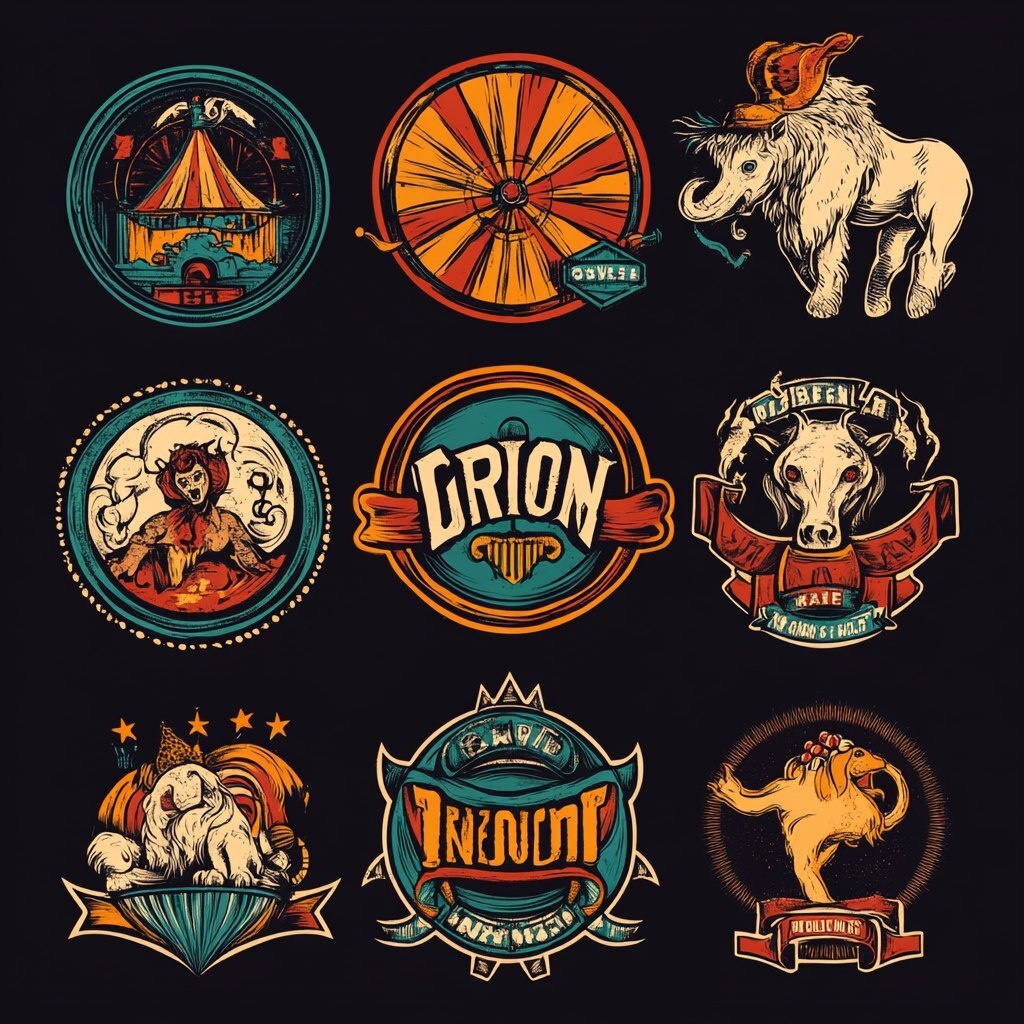 Создано на основе запроса: variety of vintage circus logos for fighting game