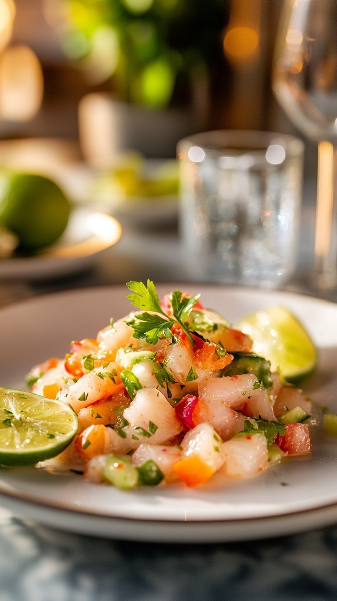 Создано на основе запроса: Title: Zesty Lime Ceviche | Close-up Shot right view, taken by a photographer with a high quality camera, served