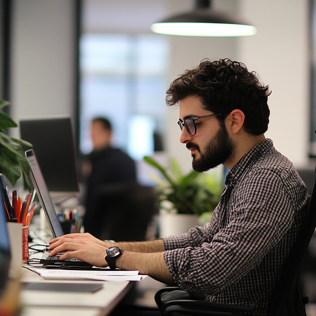 Создано на основе запроса: A software developer coding in a modern office environment