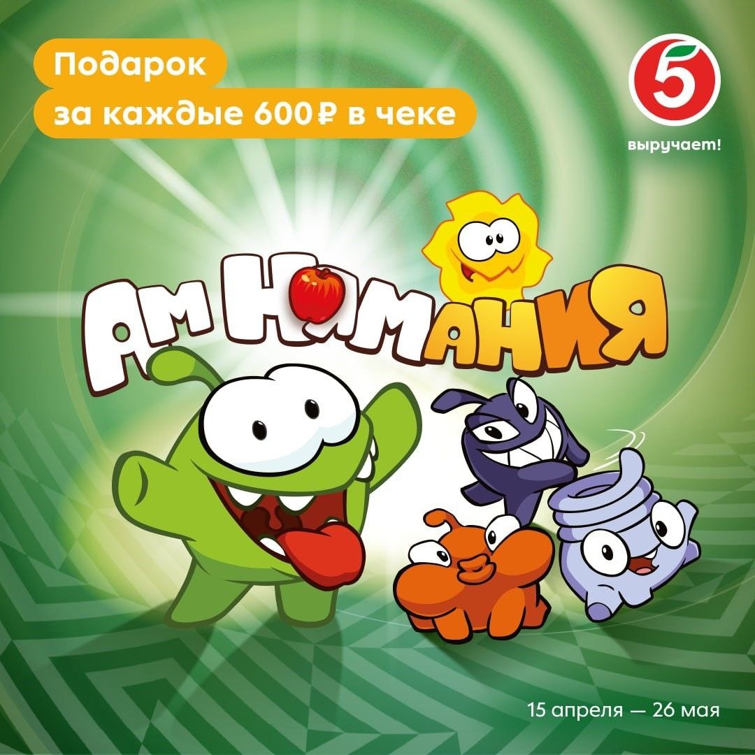 💥🍭АмНямания в «Пятёрочке»! Совершайте покупки в «Пятёрочке» от 600 ₽ с картой «Х5 Клуба» и получайте любимых героев в подарок! 🎁 Сохраняйте и регистрируйте чеки, чтобы участвовать в еженедельных розыгрышах, получайте дополнительные подарки за покупку товаров-партнёров и доставку, играйте в игру в мобильном приложении и выигрывайте ценные призы! Подробности акции в магазинах или на сайте.📲 «Пятёрочка» выручает! Erid: 2SDnje2eC7f. Реклама. ООО «Агроторг» ИНН 7825706086.