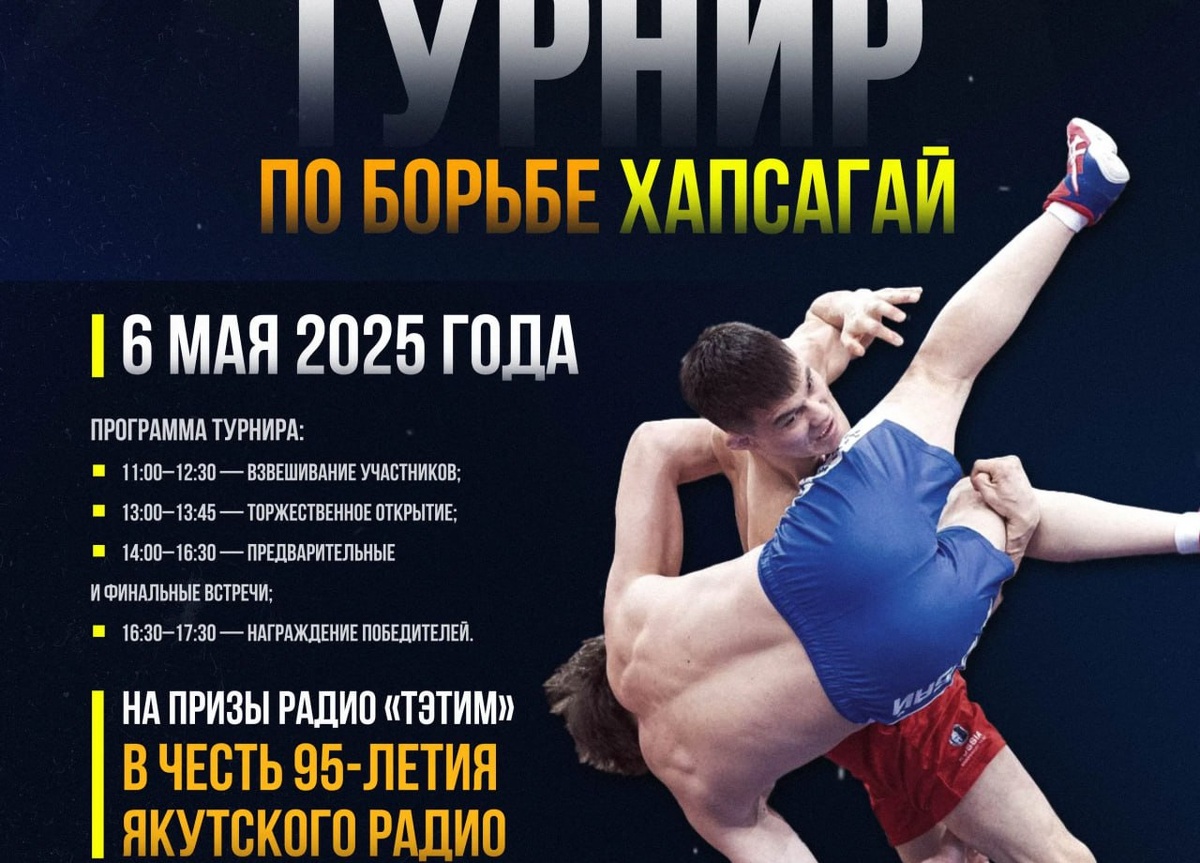 Открытый турнир по борьбе хапсагай на призы радио «Тэтим» пройдет 6 мая в Якутске. Яркое спортивное событие посвятят 95-летнему юбилею Якутского радио.