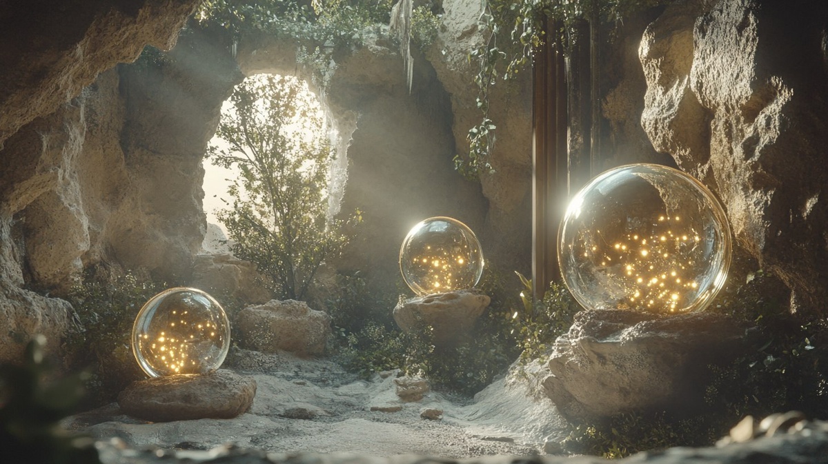Создано на основе запроса: Quantumpunk macro environment, Concept art, surreal envrionment of prismatic spheres, a movie still, UHD 64K