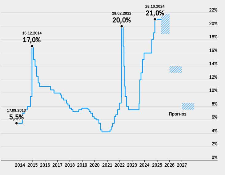 Также стоит отметить, что в октябре 2024 года, при ставке 19%, глава «Ростеха» Сергей Чемезов заявил о серьезных трудностях, связанных с обслуживанием долговых обязательств. Он отметил, что уровень ставок делает обслуживание долгов нерентабельным, даже по сравнению с такими стратегическими направлениями, как оборонная промышленность. Чемезов подчеркнул, что текущая стоимость денег создает «серьезный тормоз» для дальнейшего роста промышленного сектора.В будущем ожидается, что при постепенном снижении ключевой ставки и стабилизации инфляционных ожиданий Россия сможет перейти к более устойчивым условиям роста, одновременно поддерживая бизнес и инвесторов. Важной задачей остается создание условий для долгосрочного развития промышленности, сельского хозяйства и инновационных технологий.