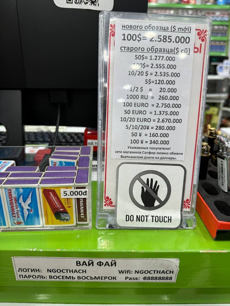 Кто хочет стать миллионером? Желание исполняется легко, просто достаточно купить тур во Вьетнам и зайти в обменник. Да-да и ты сразу Миллионер, отдал 100 USD и получил 2,5 миллиона донгов. ✅Лететь можно как с долларами, так и с евро, ‼️но Во Вьетнаме не принимаются к оплате и к обмену доллары 1996 (и ранее) года выпуска, а также купюры в плохом состоянии (рваные, мятые, потертые, с пятнами и надписями). ✅Менять лучше в ювелирных магазинах, магазинах Сапфир. Курс может отличаться, поэтому имеет смысл прогуляться, чтобы найти более выгодный. ❗️ Рассчитаться картами банков РФ невозможно, ✅НО можно снять деньги с карты МИР в банкоматах VRB (Vietnam Russia Bank) процедура достаточно простая, есть интерфейс на русском языке. Пример как снимали мы на видео. Снимали с карты МИР Сбер- комиссия за операцию 150 руб, сумма снятия 500 тыс, 1 млн донгов. ❗️✅Обменники, где меняют рубли на Фантьете не видели, в Нячанге было несколько (примерный курс на фото) ✅ карты Unionpay работали без сбое