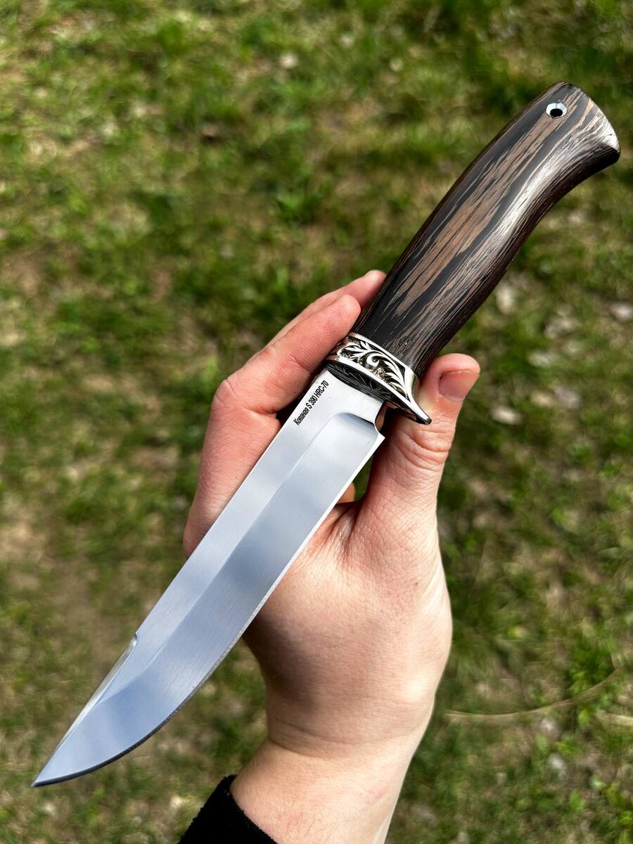 Отличная возможность приобрести нож из супертвердой премиум стали S390 Microclean со скидкой 25% ! Нож Ирбис - клинок кованая S390 Microclean (твердость HRC 68-70), рукоять дерево венге и мельхиор. Нож заточен до бритвенного состояния. Ножны из натуральной кожи в комплекте. Цена по акции по 30 апреля 24132 руб. Обычная цена 32177 руб. Можем изготовить формованные ножны из кожи растительного дубления (+ 8000 руб.) Для заказа писать на @Nazarklinokbot или по тел +79101343831, WhatsApp.