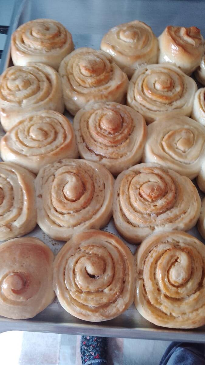 Нам понадобится : Мука 500гр 200 мл, молока 100гр, сахара 1яйцо 50гр, сливочного масла 1 чайная ложка сухих дрожжей 1 чайная ложка соли 1/2 чайная ложка ванильного сахара 2 столовые ложки корицы Кусочек сливочного масла для смазки булочек Замес теста: В большой миске смешайте муку, сахар , соль и ванильный сахар .В отдельной миске подогрейте молоко до теплого состояния добавьте дрожжи и оставьте на 10 минут пока дрожжи начнут пенится 2 .смешивание ингредиентов : Добавьте яйцо и растопленное сливочное масло в дрожевую смесь,за тем слейте ее в миску с сухими ингредиентами 3.Замесите тесто, накройте его полотенцем и поставьте в тёплое место на растойку на 1,5 часа 4.Готовое тесто раскатайте в пласт 35-40 см 5.Начинка: Смешайте размяченое сливочное масло с корицей,и ровно распределите его по тесту,скрутите рулет нарежьте рулет на кусочки 5-6 см Выложите булочки на противень застреленный пергаментной бумагой ,и оставьте на 20 минут для растойки Выпекайте в разогретой духовке