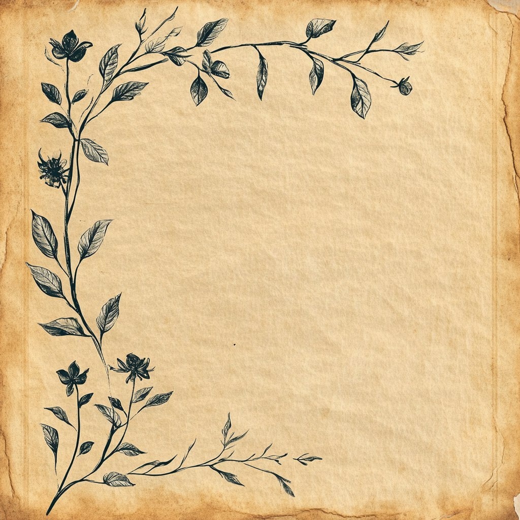 Создано на основе запроса: illustration on yellowed paper, medieval decorations, frame with symbolic decorations, branches, leaves